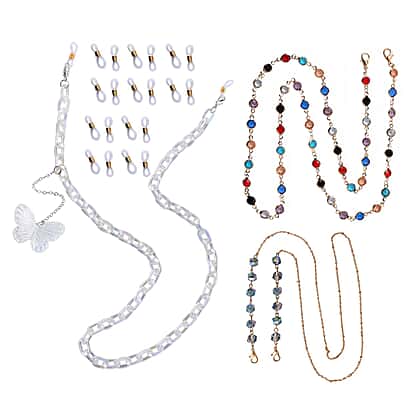 Set of 3 - Glasses Chain in Different Styles Each with 20 Pcs Rubber (Length-70cm) - Green, White & Multi