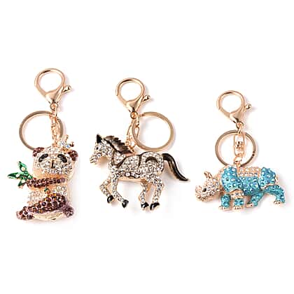 Set of 3 White, Black and Multi Colour Austrian Crystal Koala, Horse and Hippo Enamelled Keychain