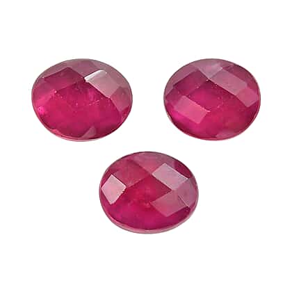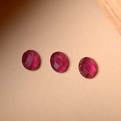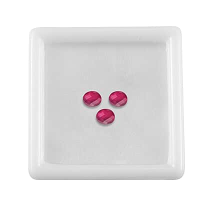 Set Of 3 Fissure Filled Ruby Oval Cut Cut 5X4 mm Gemstone, 1.28 Ct