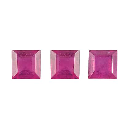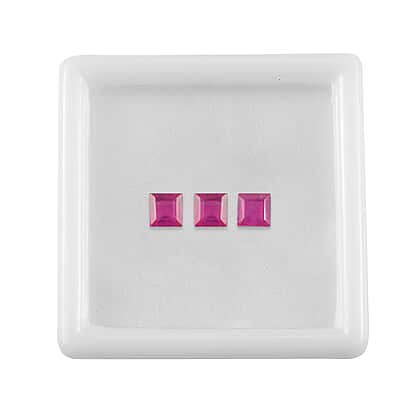 Set Of 3 Fissure Filled Ruby Square 4 mm Gemstone, 1.70 Ct
