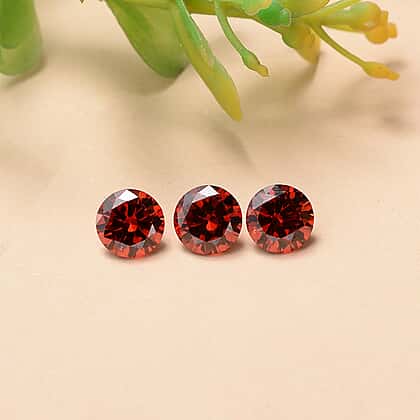 Set Of 3 Garnet Cubic Zirconia Round 6 mm Gemstone, 4.26 Ct