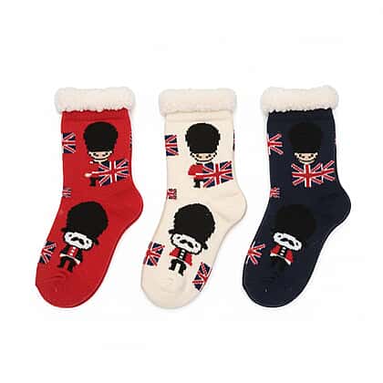 Set of 3 Lady Hutsocks London Sherpa Winter Socks - Navy, Blue & Grey