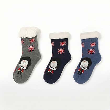 Stay cosy and warm throughout the colder months with this Set of 3 Lady Hutsocks London Sherpa Winter Socks in navy, blue and grey. Designed with a soft sherpa lining, these socks provide plush comfort and insulation against chilly temperatures. The charming seasonal motifs add a playful touch, making them perfect for relaxing at home or gifting during winter. Crafted for a snug yet comfortable fit, they help keep feet warm without feeling restrictive. Ideal for lounging, layering with boots or wearing around the house, this three-pack combines warmth, softness and everyday practicality in one delightful set.