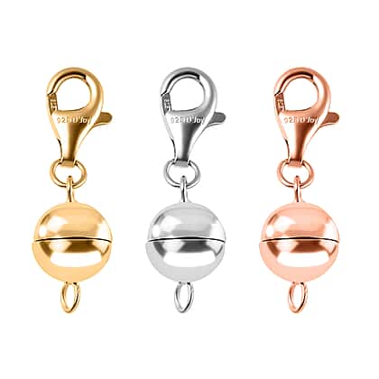 Set of 3 Magnetic Clasp in Sterling Silver with Rhodium, 18K Vermeil Yellow Gold and Rose Gold