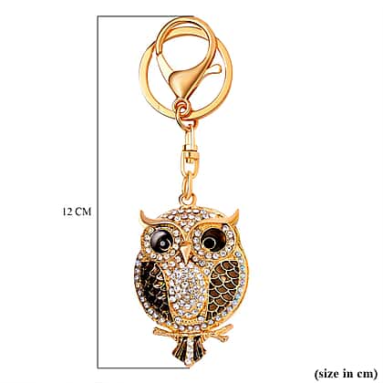 • Delicate metal keychains are decorated with sparkling rhinestones