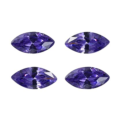Set Of 4 Blue Cubic Zirconia Marquee 5X2.5 mm Gemstone, 0.78 Ct