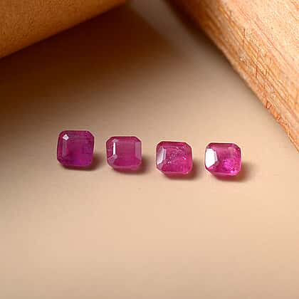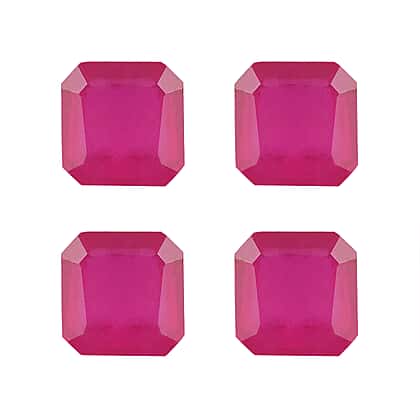 Set Of 4 Fissure Filled Ruby Octagon 4X4 mm Gemstone, 2.11 Ct