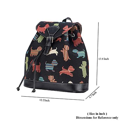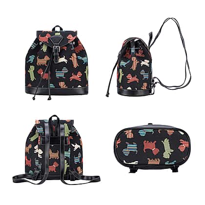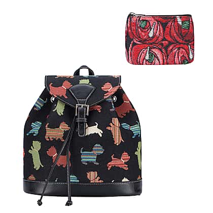 Signare Tapestry - 2 Piece Set - Puppy Design Backpack and FREE Mackintosh Simple Rose Zip Coin Purse - Black and Multi