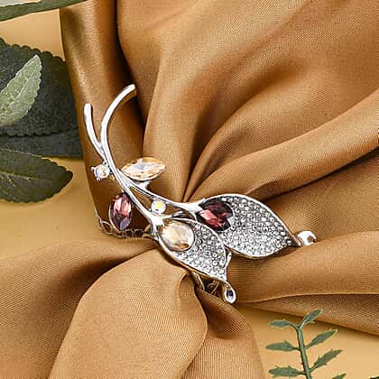 This glamorous scarf ring is all set to win everyone's attention. This unique design of leaves is decorated with multiple gemstones like Simulated Champagne Diamonds, Simulated AB White Austrian crystals along with the rare and gorgeous Simulated Purple Sapphires. A scarf ring is a very tasteful and unique piece of lesser known jewellery. We bet the spotlight will be on the ring and you on every occasion!