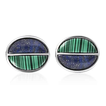 14.24 Ct. Malachite and Lapis Lazuli Cufflinks in Silver Tone