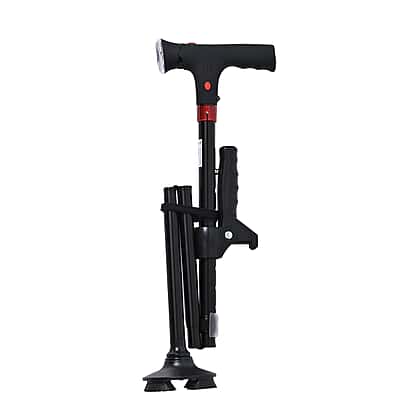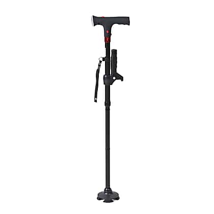 Smart Easy Up Cane (2 Handle) - Adjustable Height (85-97cm) Walking Stick with Light, SOS Alarm - Swivel Base - Black