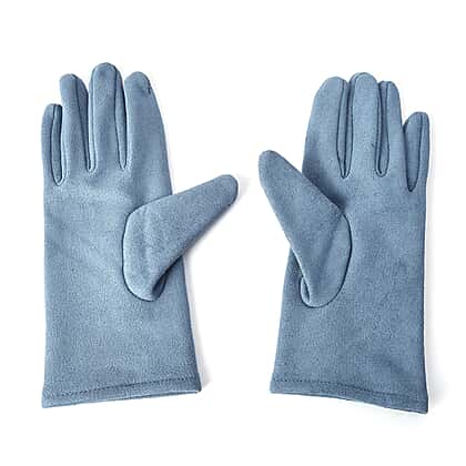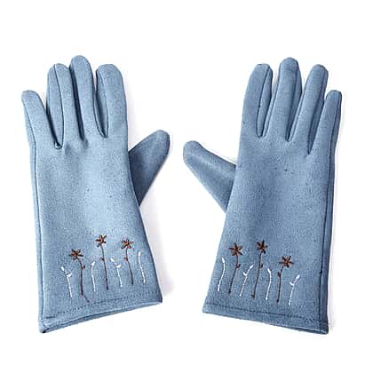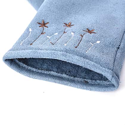 Solid Colour Women Winter Gloves with Star Embroidery on the Wrist Size 8.9x22.9 Cm in Blue