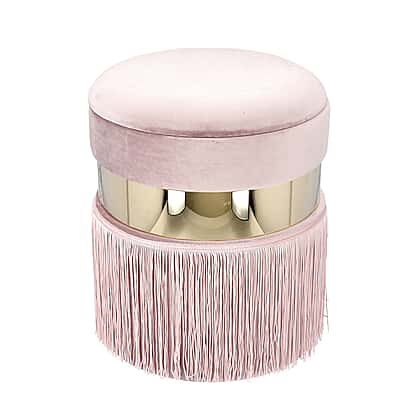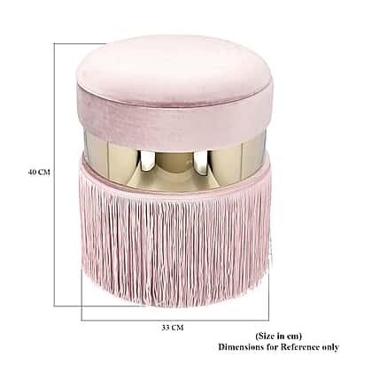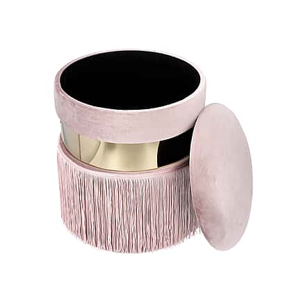 Storage Wooden Stool with Tassels (Size 33x33x40 cm) - Dusty Pink