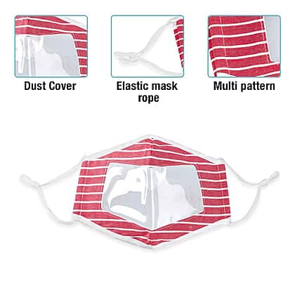 Stripe Pattern Reusable Two layer Face Cover with Transparent Window in Red Colour