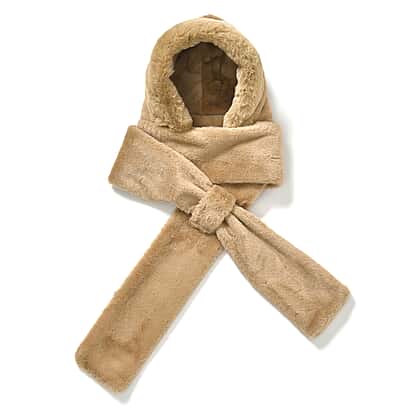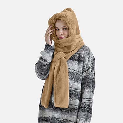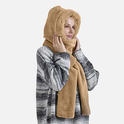 Super Soft Plush Hat and Scarf Set - Light Brown