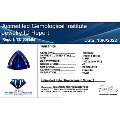 Appraised and Certified 1.6 Ct. 8 MM Tanzanite Loose Gemstone