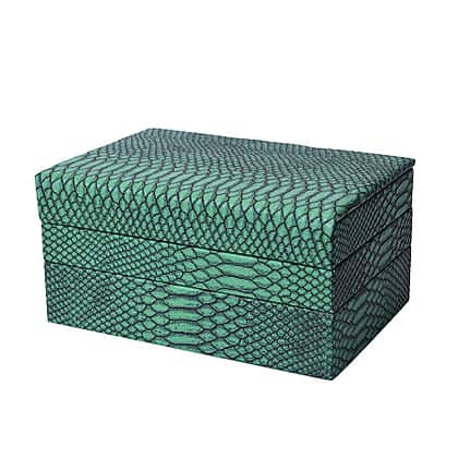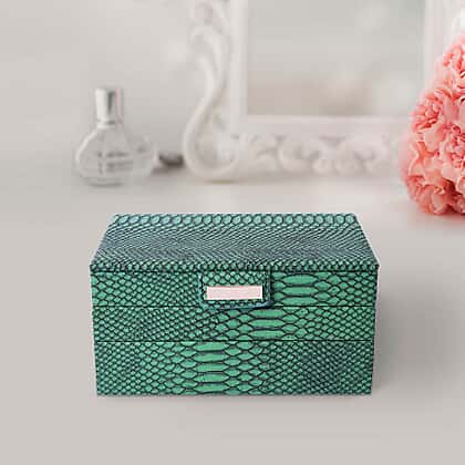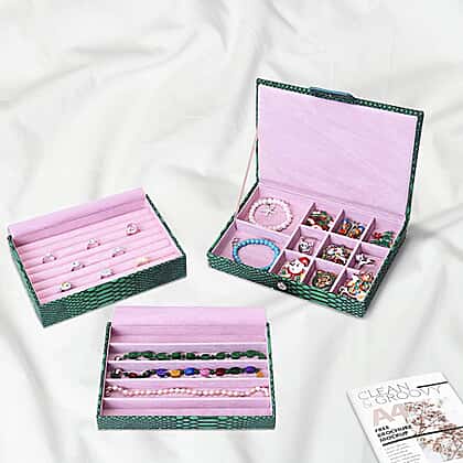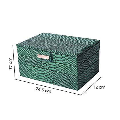 - SIZE: The green hued jewellery box is designed in 24.5x17x12cm and is fastened by a button closure clasp on the first layer