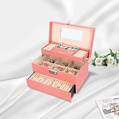 Three Layer Crocodile Skin Pattern Jewellery Box with Inside Mirror and Coded Lock (Size 33x21x19cm) - Blush