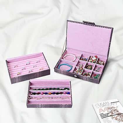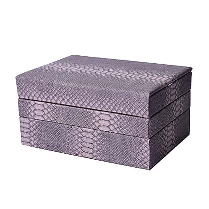 - KEEP UP WITH THE TRENDS: This layered jewellery box is designed to decorate your vanity with a snake skin faux leather exterior in a grey hue and form for a trendy look