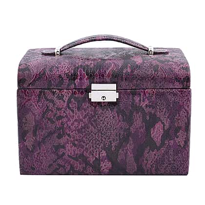 Three Layer Snake Skin Pattern Jewellery Box with Velvet Inner Lining (Size 23x15x15 Cm) - Purple