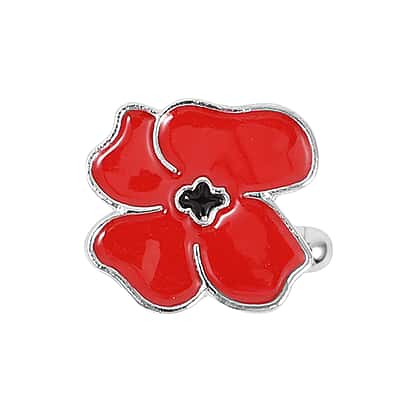 Black and Red Enamelled Floral Cuff Link in Silver Tone
