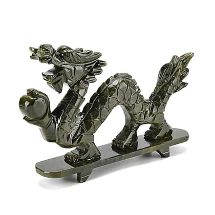 There’s something deeply captivating about this Extremely Rare Hand Carved Serpentine Dragon Ornament with Bracelet (Size 7.5 Stretchable). Crafted from genuine serpentine, this striking piece captures the dragon’s symbolism of strength, wisdom, and perseverance. The stone’s deep green hue, admired for its earthy calmness and grounding energy, adds an aura of protection to any home or workspace. Each curve and scale is hand-carved by skilled artisans, making every piece one-of-a-kind. The matching serpentine beaded bracelet complements the sculpture perfectly, making it a meaningful gift or a powerful reminder of inner strength and resilience.