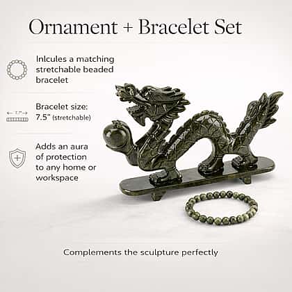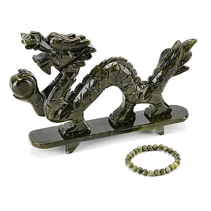 TJC EXCLUSIVE - Extremely Rare Hand Chinese Jade Carved (Serpentine) Dragon Ornament - Symbolising Strength & Perseverance With Bracelet (Size 7.5 Strechable) 6595.00 Ct.