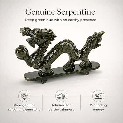 - Hand-carved from a rare, genuine serpentine gemstone