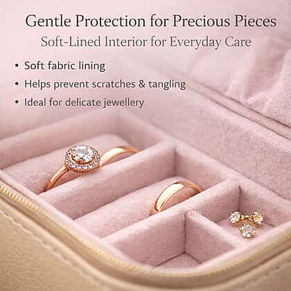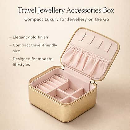 Practical yet striking, this golden travel jewellery organiser with removable compartments keeps your accessories beautifully stored wherever you go. Its glitter-finish top and matching leatherette body add a hint of glamour, while the compact 11x9.4x5.5cm design slips easily into any bag. The interior features four hooks, ring rolls, and adjustable dividers lined with soft fabric to protect every piece. Lightweight at just 140g, this organiser combines smart design with standout style — perfect for holidays, weekends away, or simply keeping your dressing table neat.