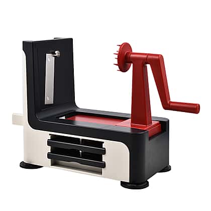 Introducing the Trudeau spiral slicer, the ultimate kitchen tool for anyone who loves to cook healthy and delicious meals. This innovative slicer turns ordinary vegetables into long, thin, spiral strands perfect for salads, stir-fries, and more. Its compact design and easy-to-use crank make it a breeze, while its high-quality stainless steel blades ensure long-lasting performance. So whether you're looking to cut down on carbs, add more veggies to your diet, or get creative in the kitchen, the Trudeau Spiral Slicer is the perfect tool. Order yours today and experience the magic of spiralising for yourself!