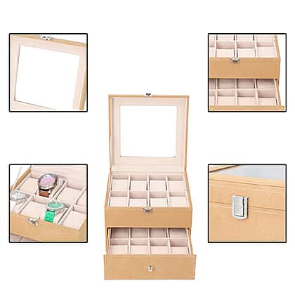 Two-Layer Velvet Watch Box with Glass Window, Perfect Gift for Birthday, Wedding Anniversary Jewellery Gift Box for Women, Girls, Boys and Men - Brown