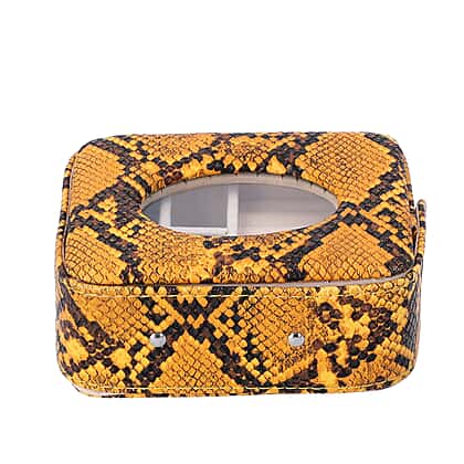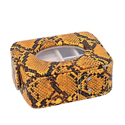 Unique Python Skin Pattern Jewellery Storage Box with Transparent Glass Window, 7 Ring Rows and 4 Sections (Size 13x11x5.5 Cm) - Yellow and Black