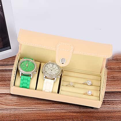 Unique Roll Style Watch and Jewellery Storage Box (Size 9x19.5cm) - Peach