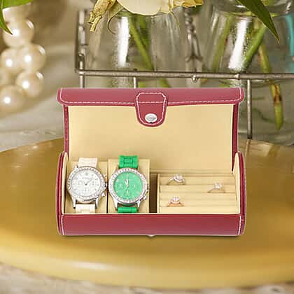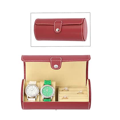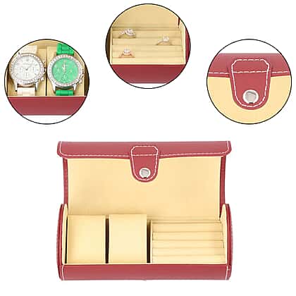 Unique Roll Style Watch and Jewellery Storage Box (Size 9x19.5cm) - Red