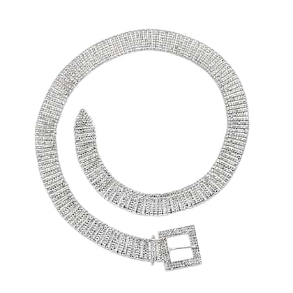 White Austrian Crystal Belt (Size - 1.2 Metre) in Silver Tone