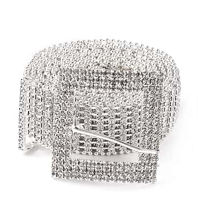 White Austrian Crystal Belt Size 47.5 inch in Silver Plated