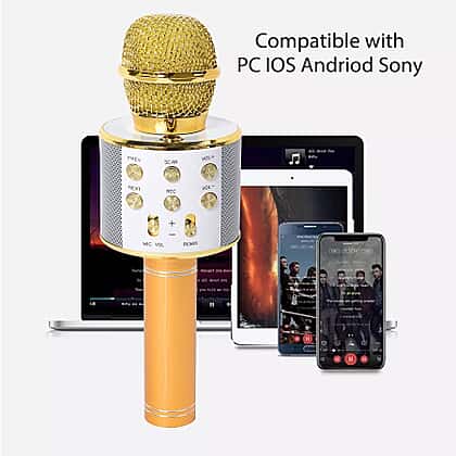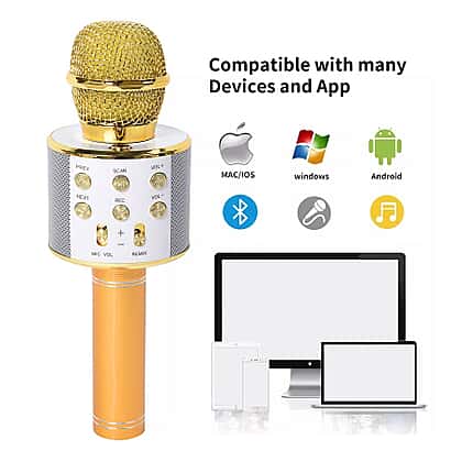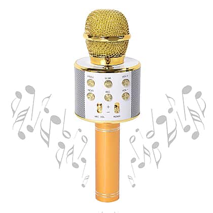 Wireless Karaoke Microphone Speaker with Bluetooth & USB Cable - Gold
