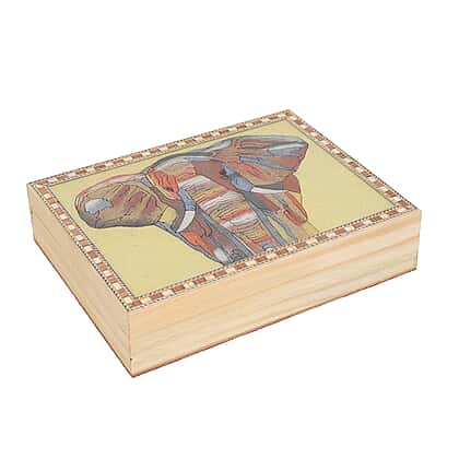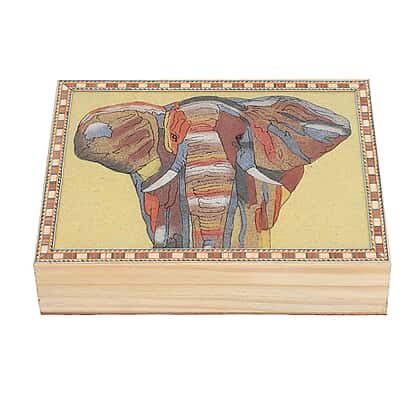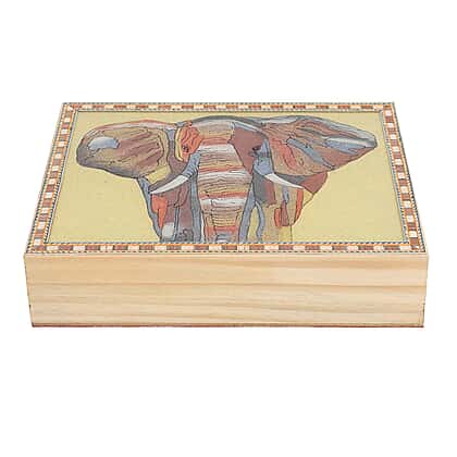 Wooden Storage Box with Elephant Gemstone Painting (Size 22x17x6 Cm)