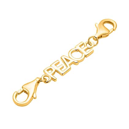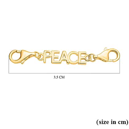 This extender is not just a piece of jewellery, but a way to express your inner peace and positivity to the world. The word "Peace" is beautifully crafted out of silver, adding a touch of simplistic elegance to your bracelet or necklace. With the sterling silver lobster locks on both sides, this extender offers a versatile option for also adjusting the length of your jewellery. Yellow gold overlay lends it a festive look.