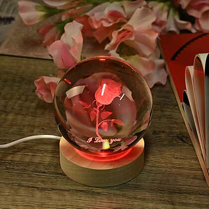 Laser Etched Dolphin Crystal Ball with Wood Base & Color Changing LED Lights