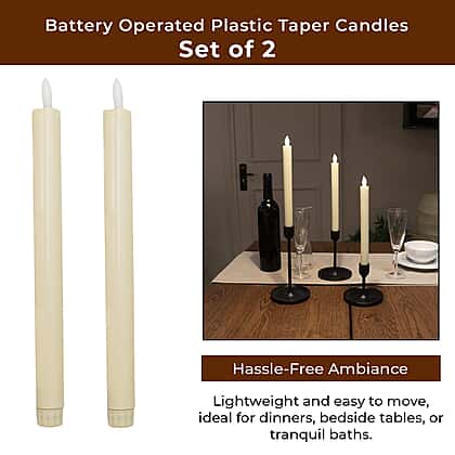 Set of 2 Battery Operated Plastic Taper Candles