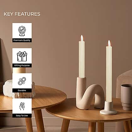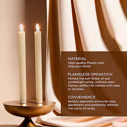Infuse your evenings with a serene glow using the Set of 2 Battery Operated Plastic Taper Candles. These elegantly designed, polyresin candles bring the soft flicker of candlelight without worrying about a real flame. Perfect for intimate dinners or tranquil nights, they provide the finishing touch of ambience with the convenience of battery operation. Enhance your setting with these hassle-free lights that promise safety and sophistication.
