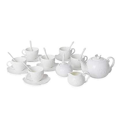 Introducing an exquisite 22 Piece embossed tea set designed to captivate your senses and elevate your tea-drinking experience. Crafted with meticulous attention to detail, this set is made of premium porcelain, ensuring both durability and timeless elegance. Each piece is adorned with enchanting butterfly embossments, adding a touch of whimsy and charm to your tea rituals. The set includes six cups, six saucers, seven spoons, one sugar bowl, one milk bowl, and a generous 650ml teapot to cater to all your entertaining needs. Immerse yourself in the artistry of tea with this stunning tea set, a true reflection of refined taste and sophistication.
