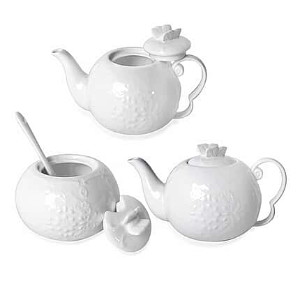 - The smooth texture and delicate white hue of the porcelain highlight the intricate details, making this tea set a true work of art.