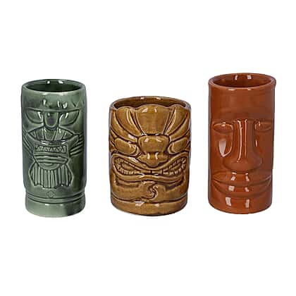 3 Piece Set - Ceramic Tiki Mug - Grey, Light and Dark Brown