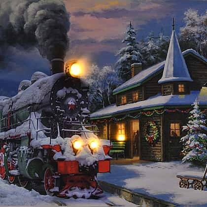 - DESCRIPTION: This 4-LED train painting will brighten up your home and create a festive mood