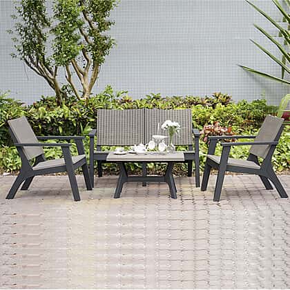 - MULTI-FUNCTIONAL OUTDOOR SET: This 4-piece outdoor sofa set includes one Coffee table, 2 Armchairs, and one loveseat. The classic set is suitable for casual dining and picnics