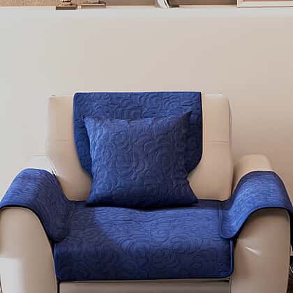 5 Piece Set - Ultrasonic Armchair Cover (Size 61x75 Cm), Back Cover (Size 90x60 Cm), Cushion Cover (Size 45 Cm) and 2 Arm Cover (Size 52x45 Cm) - Teal Blue