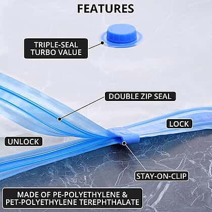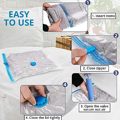 • Space-saving vacuum storage bags are durable and reusable