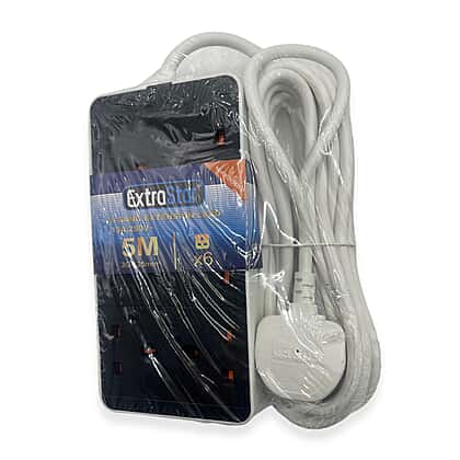 6 Gang Way UK Trailing Socket Mains Power Extension Lead 5m - Black & White